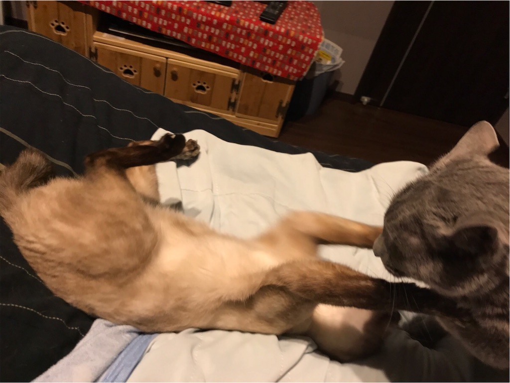 ほぼ毎日こんな格闘技ごっこしてますけど、仲悪いんですかね(^^;)