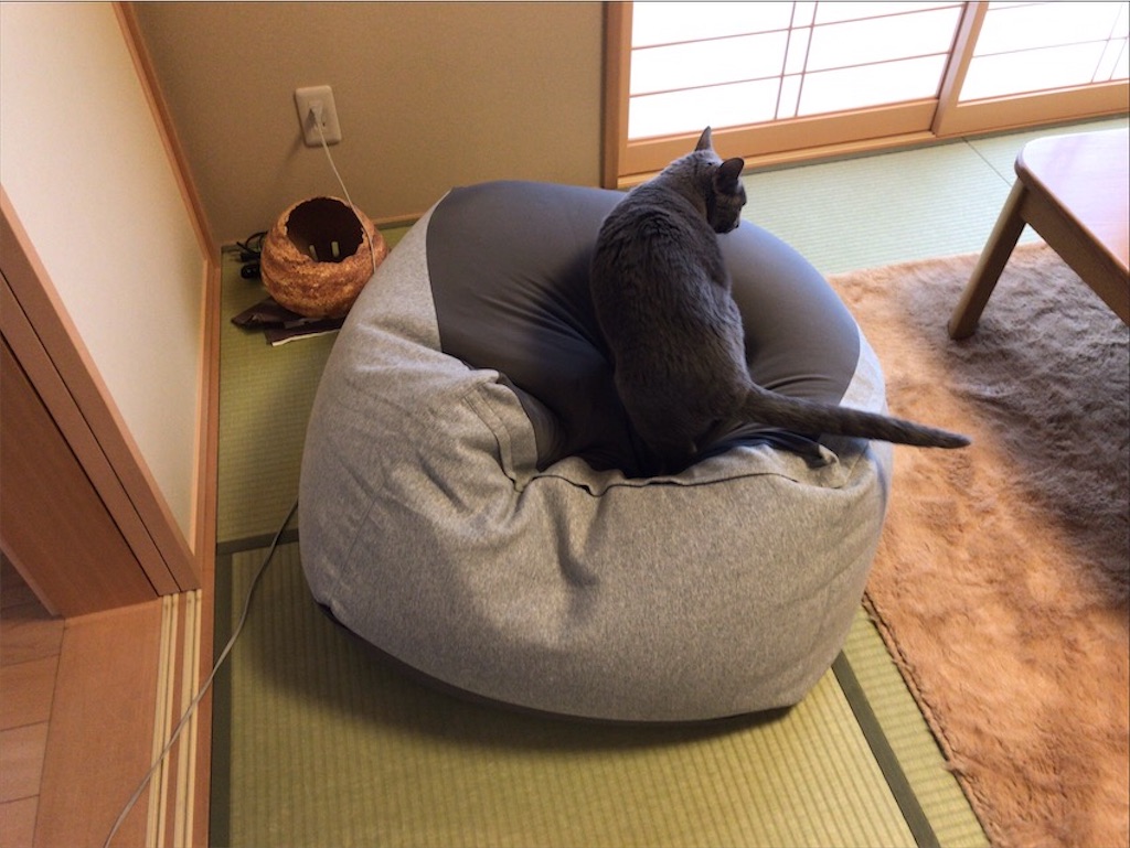 こうしてせっかく新調したビーズクッションはいつの間にやらネコのベッドと化していくのであった…(^^;)